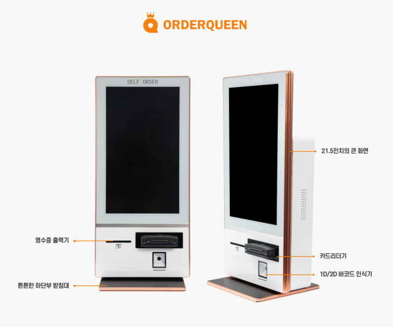 본문 오더퀸 키오스크 22인치 오더퀸 키오스크 카드전용 *22인치 카드결제 전용 키오스크 *깔끔한 외관 디자인 *간편한 메뉴주문 *다양한 결제시스템 지원 *오더퀸 제휴 포인트 *편리한 점주용 앱 제공